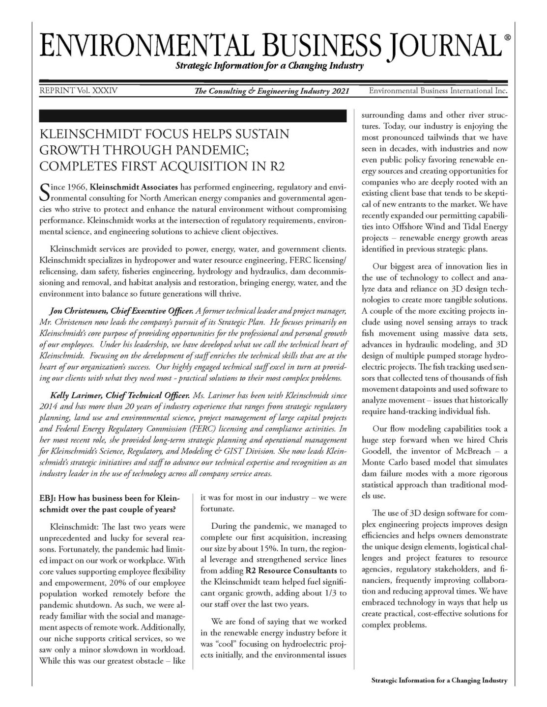 Check out our recent article in the Environmental Business Journal (EBJ) – featuring an interview with our CEO Jon Christensen and Kelly Larimer, Chief Technical Officer.